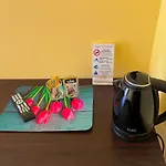 У деяких номерах є електричний чайник, а також телевізор для зручності гостей. Номери обладнані письмовим столом та паркетною підлогою. Для зручності гостей у ванних кімнатах надаються фен і рушники.